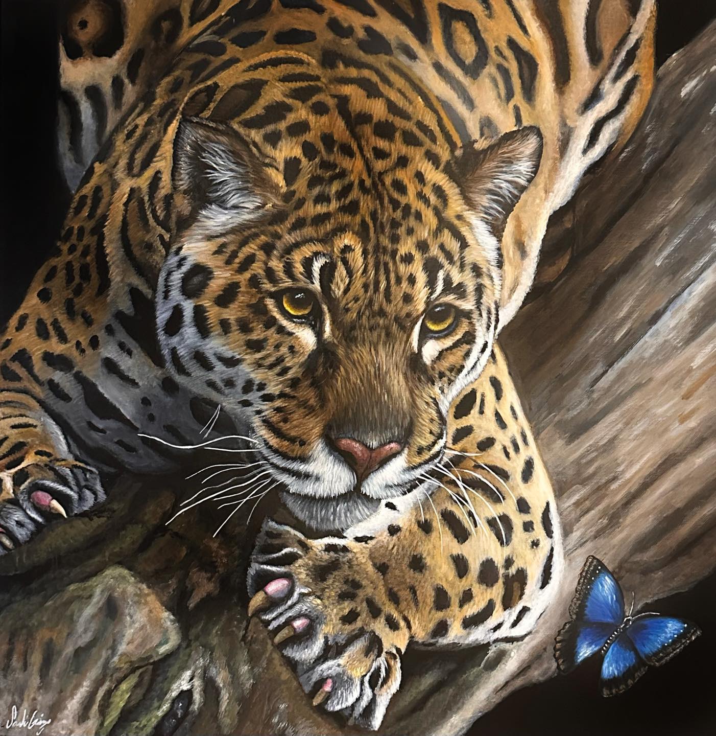 Det måler 60x60x 4cm-Tyk ramme) cm og er et originalt værk af den professionelle dyreportræt- og wildlife-kunstner Sandra Gringer.